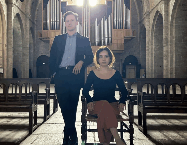 Гільдеґарда (‘Hildegard’ in Ukrainian) is a unique reimagining of Hildegard von Bingen’s music. It combines the vocal sound production approaches of authentic Ukrainian folk singing with modular synthesis techniques drawn from high medieval polyphony and monophony. This approach, realised by Oleh Shpudeiko, known as Heinali, an electronic music composer whose work extends Western medieval music traditions through modular synthesis, and Andriana-Yaroslava Saienko, a singer practising authentic Ukrainian vocal tradition, highlights the physicality inherent in Hildegard’s visionary music, serving as a distant mirror to reflect, comprehend, externalise, and transcend wartime experiences.